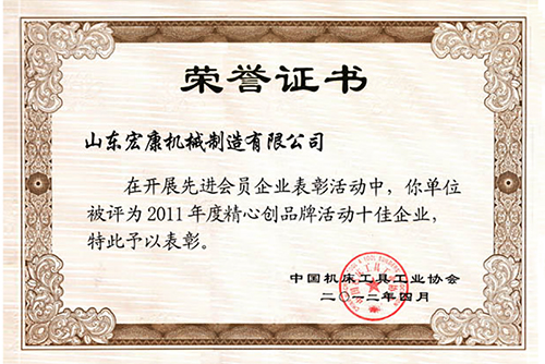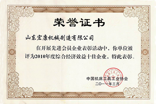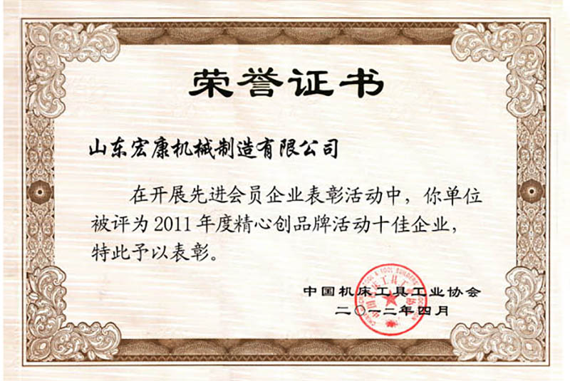 中國機(jī)床工具工業(yè)協(xié)會(huì)榮譽(yù)證書